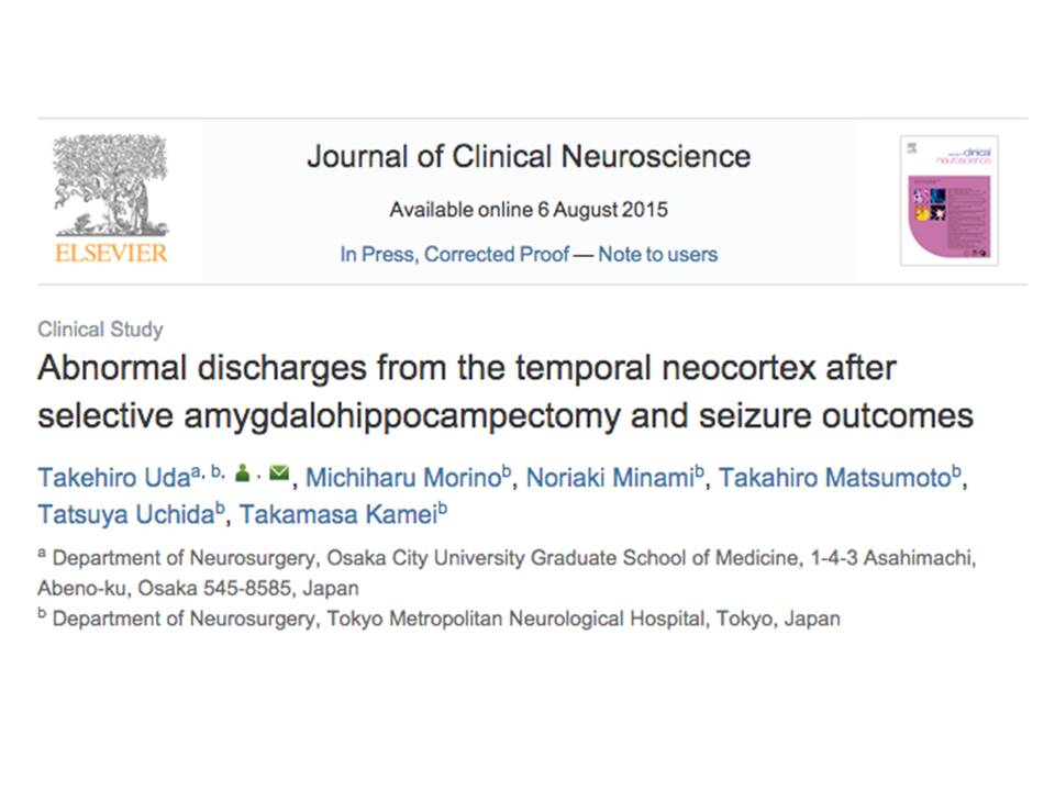 「選択的海馬扁桃体摘出後に残存する側頭葉外側の異常波と発作予後 (Abnormal discharges from the temporal neocortex after selective amygdalohippocampectomy and seizure outcomes)」