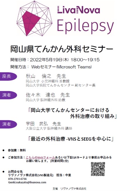 岡山県てんかん外科セミナー 2022年4月28日 に Takehiro Uda が投稿 2022年5月19日に、「岡山県てんかん外科セミナー」が開催されました。岡山大学の秋山先生に座長をしていただき、「最近の外科治療-VNSとSEEGを中心に」と題した講演をさせて頂きました。 Tweet