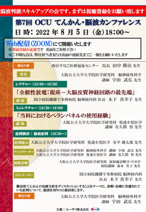 第7回 OMUてんかん・脳波カンファレンス 2022年8月4日 に Takehiro Uda が投稿 2022年8月5日に、第7回 OMUてんかん・脳波カンファレンスが開催されました。レクチャー、ミニレクチャーのあと、症例検討が行われる予定です。座長などを担当させていただきました。 Tweet