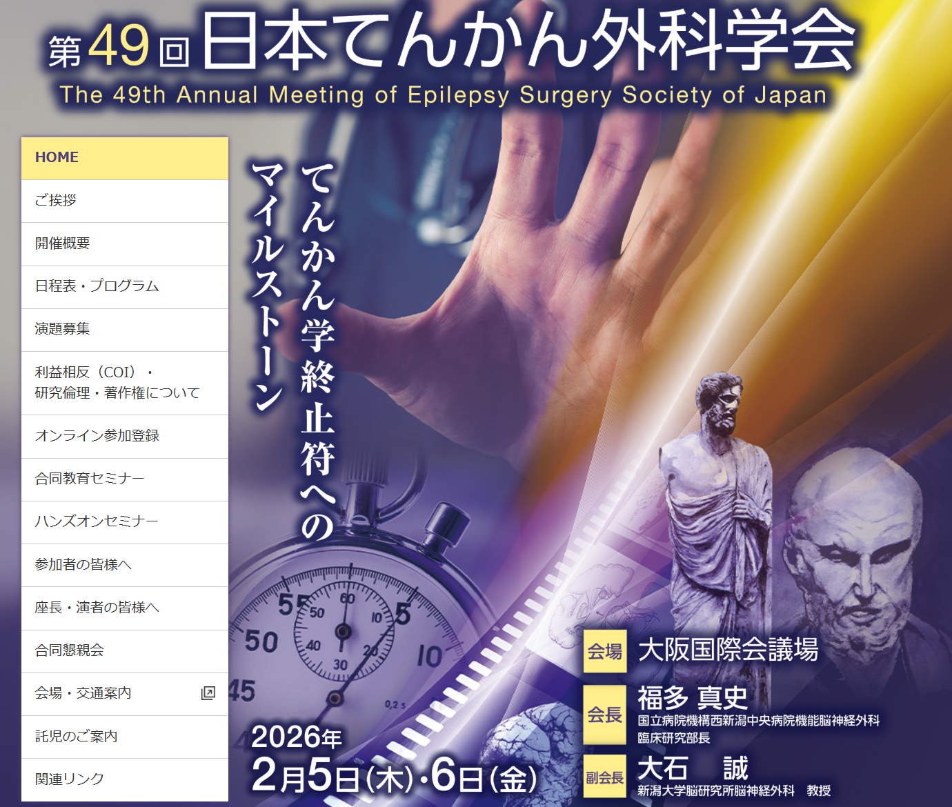 2026年2月5日から6日に大阪で開催された「第49回日本てんかん外科学会」にて、「SEEG導入後のてんかん外科治療の手術適応と発作予後」の演題名でシンポジウム、「ロボット支援SEEG導入における経験と臨床的価値ー精度・安全性・術式最適化の臨床データー」の演題名でランチョンセミナー、「現在のてんかん外科治療における迷走神経刺激療法の役割」の演題名でイブニングセミナーで発表させていただきました。また、田上雄大先生に口演発表をしていただきました。たくさんの先輩、仲間たちにも会え、楽しい時間も過ごせました。